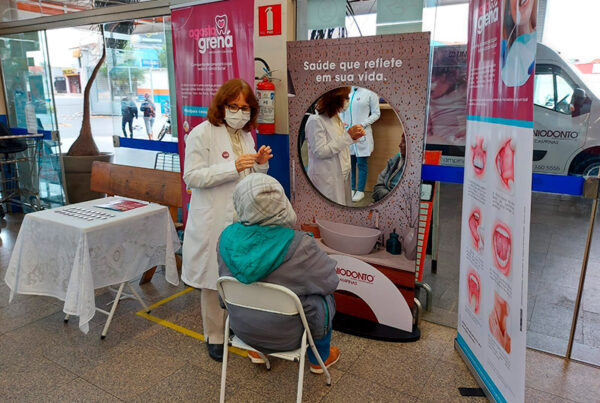 No espaço montado pela Uniodonto Porto Alegre no evento, a equipe recebeu os participantes com uma estrutura interativa, que incluía uma boca, escova e fio dental em tamanho gigante, oferecendo uma experiência educativa e lúdica sobre a importância da higiene bucal. Além disso, a cooperativa exibiu um banner informativo sobre o programa e distribuiu brindes aos participantes, compartilhando a mensagem de prevenção e cuidados com um público diversificado.