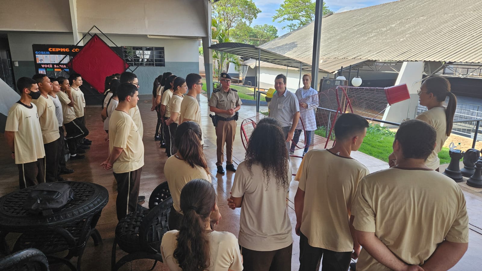 Participando ativamente das iniciativas da vida comunitária, a Uniodonto Sul Goiano entregou no dia 19 de setembro, a garrafa gigante de metal para o Colégio da Polícia Militar de Goiás, Unidade Dionária Rocha. A garrafa é elemento central para a campanha de coleta de materiais recicláveis (metal e plástico), desenvolvida pela instituição.