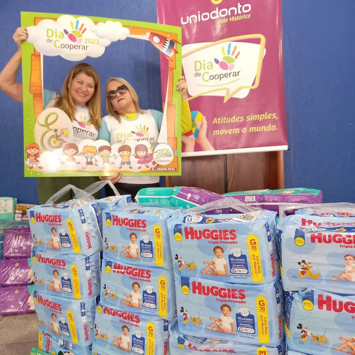 Foi um dia de diversão, brincadeiras, teatro, orientações de saúde bucal, e muita cooperação. Os cooperados doaram fraldas para a instituição filantrópica  Anjos da Esperança.